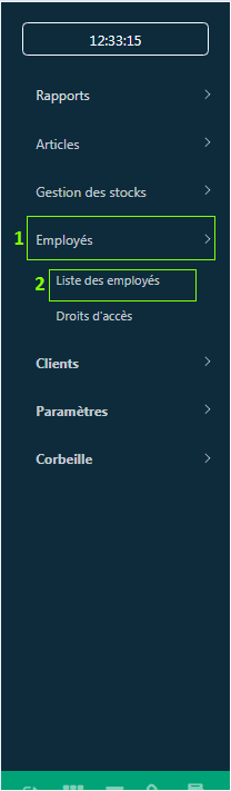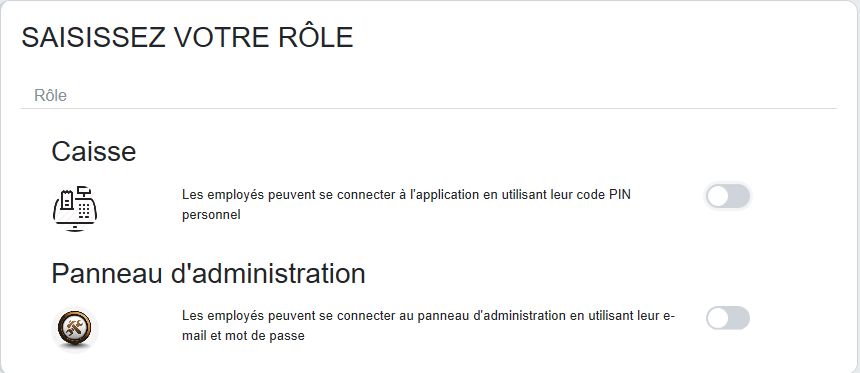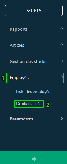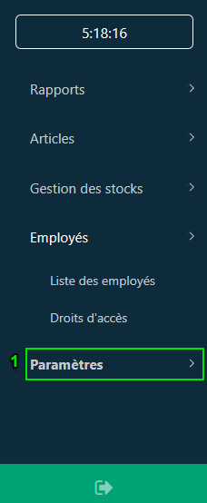 Afin de maintenir les caisses actives ainsi que les statistiques d'ouverture et de fermeture de caisse, il est recommandé de se déconnecter de l'application POS avant de mettre à jour ou de désinstaller l'application. L’option de déconnection est directement accessible aux propriétaires de l’entreprise ainsi pour tout autre employé voulant effectuer cette opération (il doit d’abord disposer du droit de déconnexion associé à son rôle).